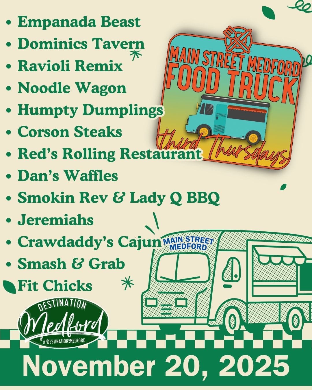 ✨ See You Tomorrow, Medford! Bundle up, bring the family, bring your friends, bring your dog. Food Truck Thursday is the perfect fall night out. Eat good food. Shop local. Sip something delicious. Repeat.